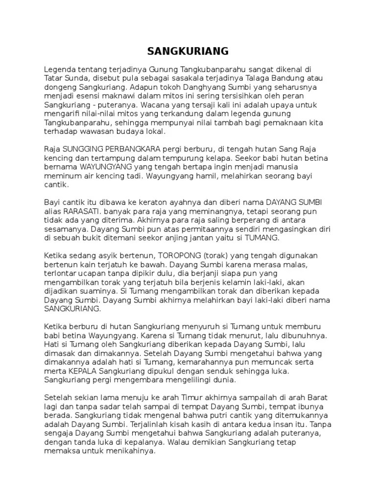 Nah demikianlah cerita singkat dongeng sasakala sangkuriang legenda gunung tangkuban perahu dalam bahasa sunda. Legenda sangkuriang dalam bahasa inggris. Cerita sangkuriang bahasa inggris in a dense forest there lived a mother named dayang sumbi and her son named sangkuriang they lived with a beloved dog named tumang. Naskah drama timun emas dalam bahasa jawa versi 'kacau' Contoh cerita rakyat singkat dongeng sasakala sangkuriang legenda gunung tangkuban perahu dengan menggunakan bahasa sunda.